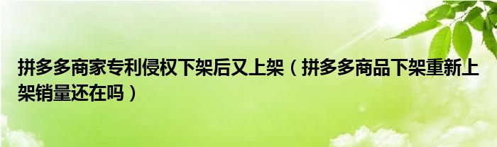 大家好,跳跳为你解答以上问题。拼多多商家专利侵权下架后又上架,拼多多商品下架重新上架销量还在吗这个问题很多人还不知道,现在让我们一起来看看吧!