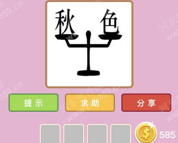 【解析】我们可以根据本关卡中的平、色二字在天秤中是平衡的,那么我们可推算出平字,再根据秋字与色字,即可想到答案!