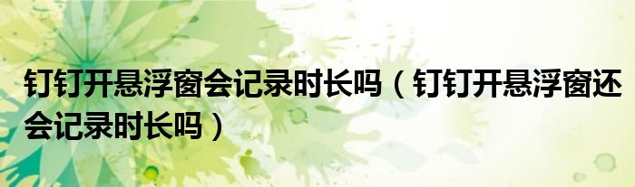 大家好,跳跳为你解答以上问题。钉钉开悬浮窗会记录时长吗,钉钉开悬浮窗还会记录时长吗这个问题很多人还不知道,现在让我们一起来看看吧!