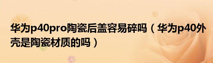 大家好,熊熊为你解答以上问题。华为p40pro陶瓷后盖容易碎吗,华为p40外壳是陶瓷材质的吗这个很多人还不知道,现在让我们一起来看看吧!