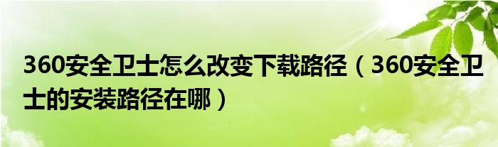 大家好,熊熊为你解答以上问题。360安全卫士怎么改变下载路径,360安全卫士的安装路径在哪这个很多人还不知道,现在让我们一起来看看吧!