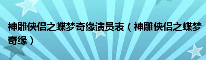 大家好,小晋来为大家解答以下问题,关于神雕侠侣之蝶梦奇缘演员表,神雕侠侣之蝶梦奇缘很多人还不知道,今天让我们一起来看看吧!