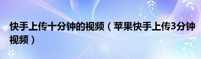 大家好,小晋来为大家解答以下问题,关于快手上传十分钟的视频,苹果快手上传3分钟视频很多人还不知道,今天让我们一起来看看吧!