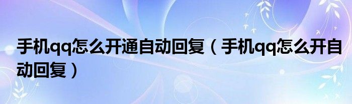 手机qq怎么开通自动回复(手机qq怎么开自动回复)