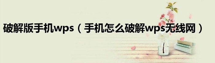 大家好,小晋来为大家解答以下问题,关于破解版手机wps,手机怎么破解wps无线网很多人还不知道,今天让我们一起来看看吧!