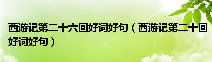 关于西游记第二十六回好词好句,西游记第二十回好词好句这个很多人还不知道,今天菲菲来为大家解答以上的问题,现在让我们一起来看看吧!