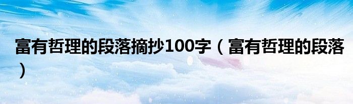 关于富有哲理的段落摘抄100字,富有哲理的段落这个很多人还不知道,今天菲菲来为大家解答以上的问题,现在让我们一起来看看吧!
