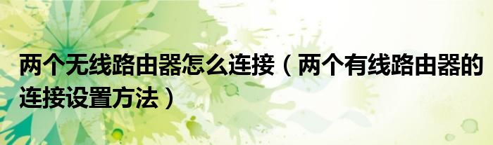 关于两个无线路由器怎么连接,两个有线路由器的连接设置方法这个很多人还不知道,今天菲菲来为大家解答以上的问题,现在让我们一起来看看吧!