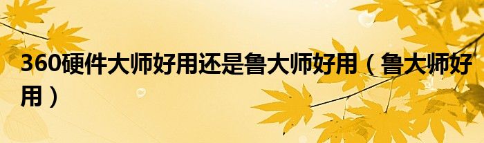 关于360硬件大师好用还是鲁大师好用,鲁大师好用这个很多人还不知道,今天菲菲来为大家解答以上的问题,现在让我们一起来看看吧!