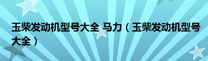 玉柴发动机型号大全 马力(玉柴发动机型号大全)