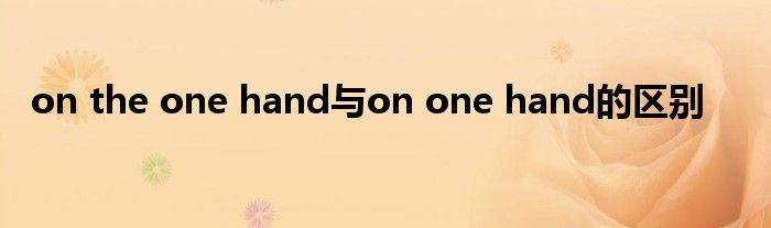 关于on the one hand与on one hand的区别这个很多人还不知道,今天菲菲来为大家解答以上的问题,现在让我们一起来看看吧!