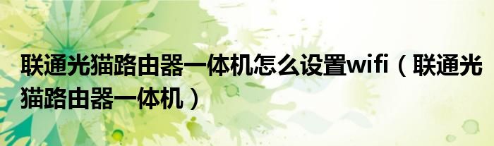 联通光猫路由器一体机怎么设置wifi(联通光猫路由器一体机)