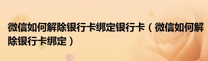 关于微信如何解除银行卡绑定银行卡,微信如何解除银行卡绑定这个很多人还不知道,今天菲菲来为大家解答以上的问题,现在让我们一起来看看吧!