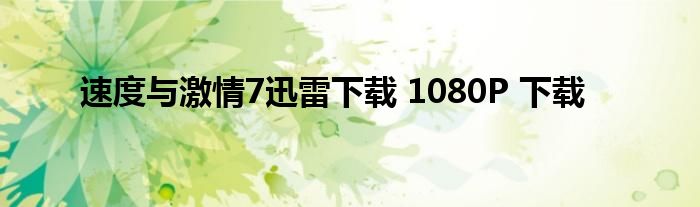 关于速度与激情7迅雷下载 1080P 下载这个很多人还不知道,今天菲菲来为大家解答以上的问题,现在让我们一起来看看吧!