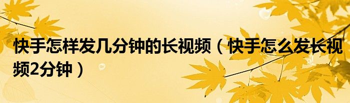 大家好,小晋来为大家解答以下问题,关于快手怎样发几分钟的长视频,快手怎么发长视频2分钟很多人还不知道,今天让我们一起来看看吧!