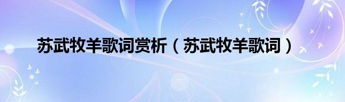 关于苏武牧羊歌词赏析,苏武牧羊歌词这个很多人还不知道,今天菲菲来为大家解答以上的问题,现在让我们一起来看看吧!