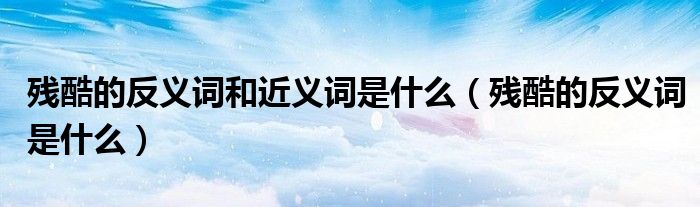 大家好,小晋来为大家解答以下问题,关于残酷的反义词和近义词是什么,残酷的反义词是什么很多人还不知道,今天让我们一起来看看吧!