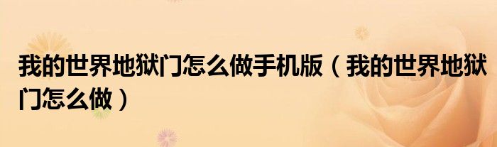 2、我的世界地狱门怎么做?如果你不知道我的世界地狱门怎么做,可以看看下面我的世界地狱门的合成材料和方法介绍,希望能帮你解决问题。