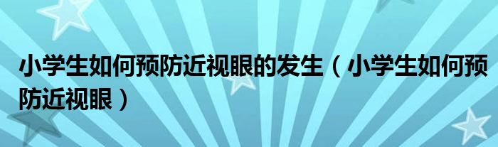 关于小学生如何预防近视眼的发生,小学生如何预防近视眼这个很多人还不知道,今天菲菲来为大家解答以上的问题,现在让我们一起来看看吧!