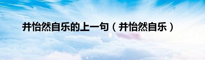 大家好,小晋来为大家解答以下问题,关于并怡然自乐的上一句,并怡然自乐很多人还不知道,今天让我们一起来看看吧!