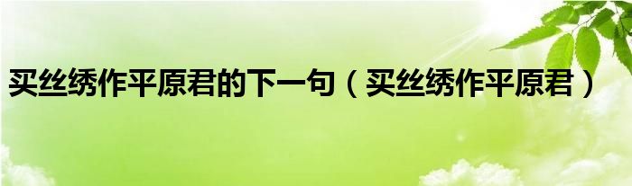 买丝绣作平原君的下一句(买丝绣作平原君)