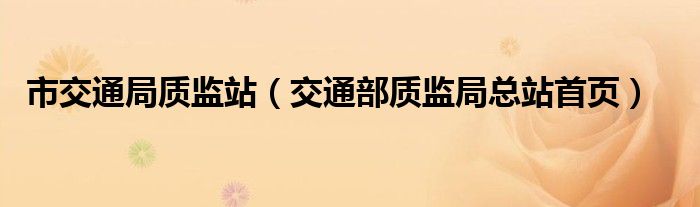 关于市交通局质监站,交通部质监局总站首页这个很多人还不知道,今天菲菲来为大家解答以上的问题,现在让我们一起来看看吧!