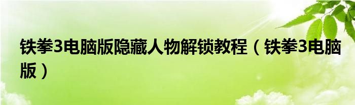 关于铁拳3电脑版隐藏人物解锁教程,铁拳3电脑版这个很多人还不知道,今天菲菲来为大家解答以上的问题,现在让我们一起来看看吧!