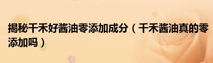 大家好,小晋来为大家解答以下问题,关于揭秘千禾好酱油零添加成分,千禾酱油真的零添加吗很多人还不知道,今天让我们一起来看看吧!