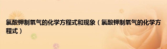 关于氯酸钾制氧气的化学方程式和现象,氯酸钾制氧气的化学方程式这个很多人还不知道,今天菲菲来为大家解答以上的问题,现在让我们一起来看看吧!