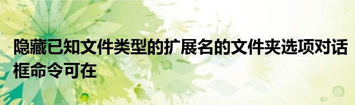 关于隐藏已知文件类型的扩展名的文件夹选项对话框命令可在这个很多人还不知道,今天菲菲来为大家解答以上的问题,现在让我们一起来看看吧!