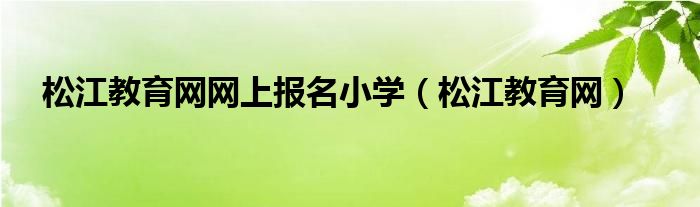 关于松江教育网网上报名小学,松江教育网这个很多人还不知道,今天菲菲来为大家解答以上的问题,现在让我们一起来看看吧!