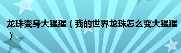 关于龙珠变身大猩猩,我的世界龙珠怎么变大猩猩这个很多人还不知道,今天菲菲来为大家解答以上的问题,现在让我们一起来看看吧!