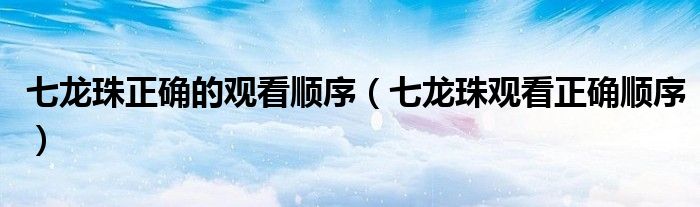 七龙珠正确的观看顺序(七龙珠观看正确顺序)