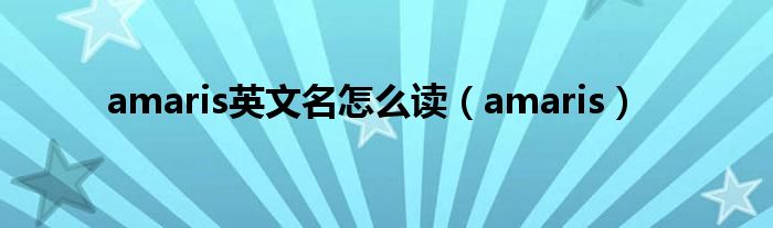 关于amaris英文名怎么读,amaris这个很多人还不知道,今天菲菲来为大家解答以上的问题,现在让我们一起来看看吧!