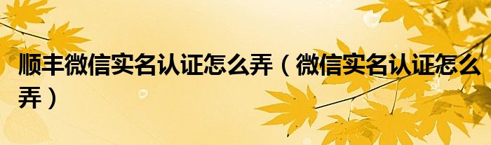 大家好,小晋来为大家解答以下问题,关于顺丰微信实名认证怎么弄,微信实名认证怎么弄很多人还不知道,今天让我们一起来看看吧!