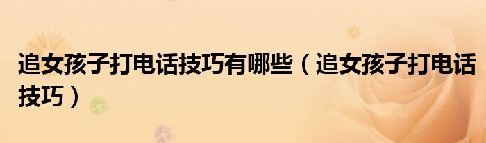 追女孩子打电话技巧有哪些,追女孩子打电话技巧很多人还不知道,乐乐来为大家解答以上问题,现在让我们一起来看看吧!