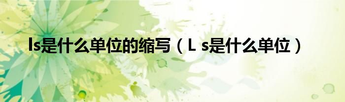 关于ls是什么单位的缩写,L s是什么单位这个很多人还不知道,今天菲菲来为大家解答以上的问题,现在让我们一起来看看吧!