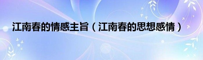 关于江南春的情感主旨,江南春的思想感情这个很多人还不知道,今天菲菲来为大家解答以上的问题,现在让我们一起来看看吧!