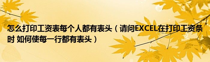 关于怎么打印工资表每个人都有表头,请问EXCEL在打印工资条时 如何使每一行都有表头这个很多人还不知道,今天菲菲来为大家解答以上的问题,现在让我们一起来看看吧!