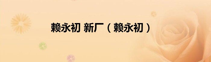 关于赖永初 新厂,赖永初这个很多人还不知道,今天菲菲来为大家解答以上的问题,现在让我们一起来看看吧!
