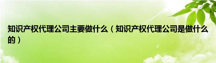 知识产权代理公司主要做什么(知识产权代理公司是做什么的)