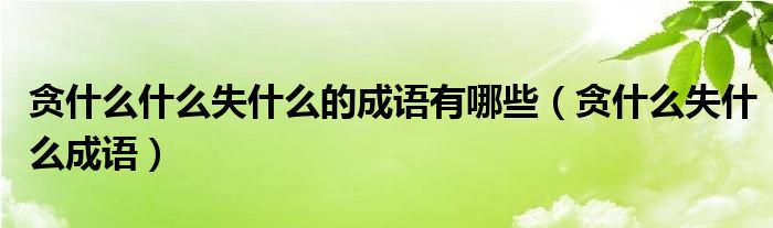 大家好,小晋来为大家解答以下问题,关于贪什么什么失什么的成语有哪些,贪什么失什么成语很多人还不知道,今天让我们一起来看看吧!