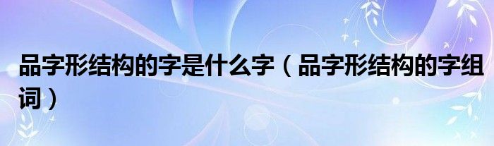 关于品字形结构的字是什么字,品字形结构的字组词这个很多人还不知道,今天菲菲来为大家解答以上的问题,现在让我们一起来看看吧!