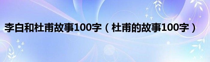 关于李白和杜甫故事100字,杜甫的故事100字这个很多人还不知道,今天菲菲来为大家解答以上的问题,现在让我们一起来看看吧!