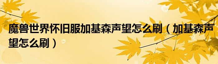 关于魔兽世界怀旧服加基森声望怎么刷,加基森声望怎么刷这个很多人还不知道,今天菲菲来为大家解答以上的问题,现在让我们一起来看看吧!