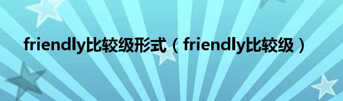 关于friendly比较级形式,friendly比较级这个很多人还不知道,今天菲菲来为大家解答以上的问题,现在让我们一起来看看吧!