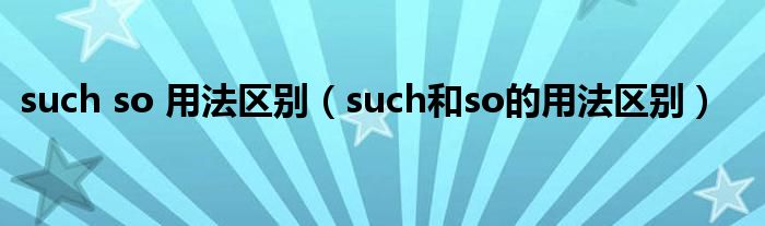 关于such so 用法区别,such和so的用法区别这个很多人还不知道,今天菲菲来为大家解答以上的问题,现在让我们一起来看看吧!