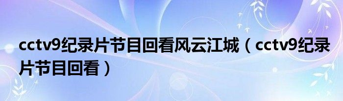 cctv9纪录片节目回看风云江城(cctv9纪录片节目回看)